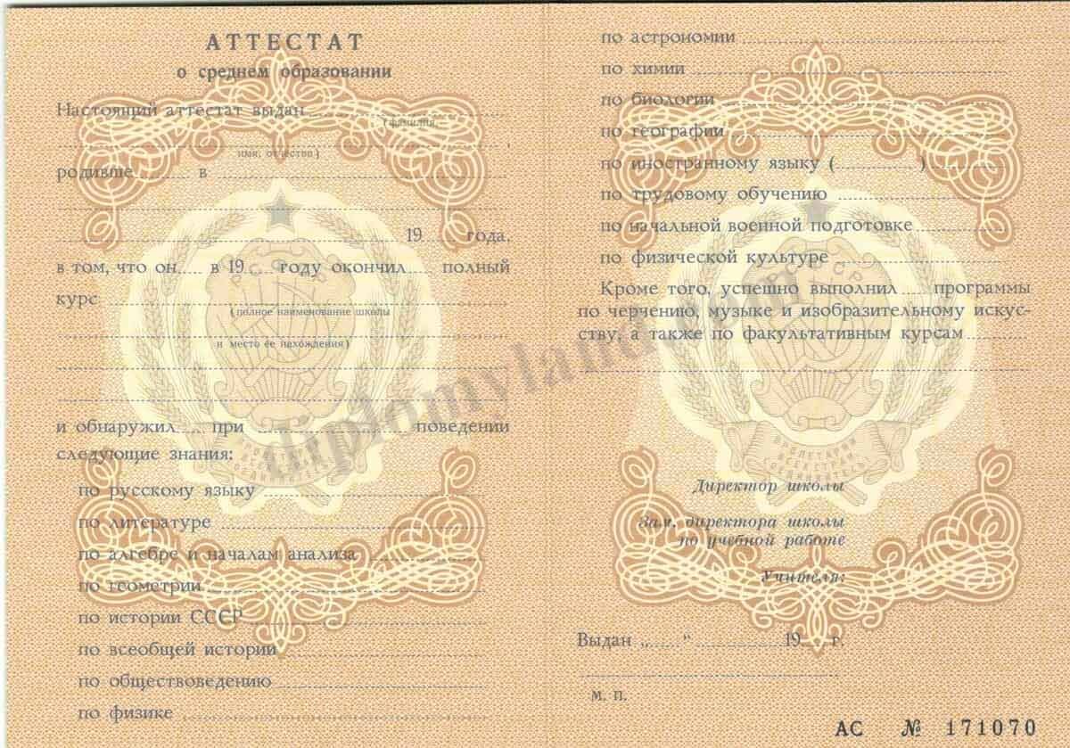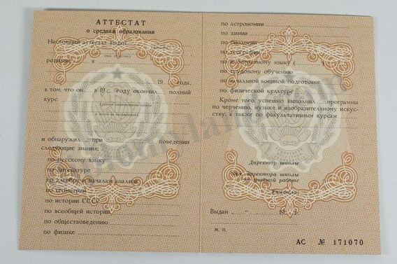 Аттестат за 10 (11) класс СССР